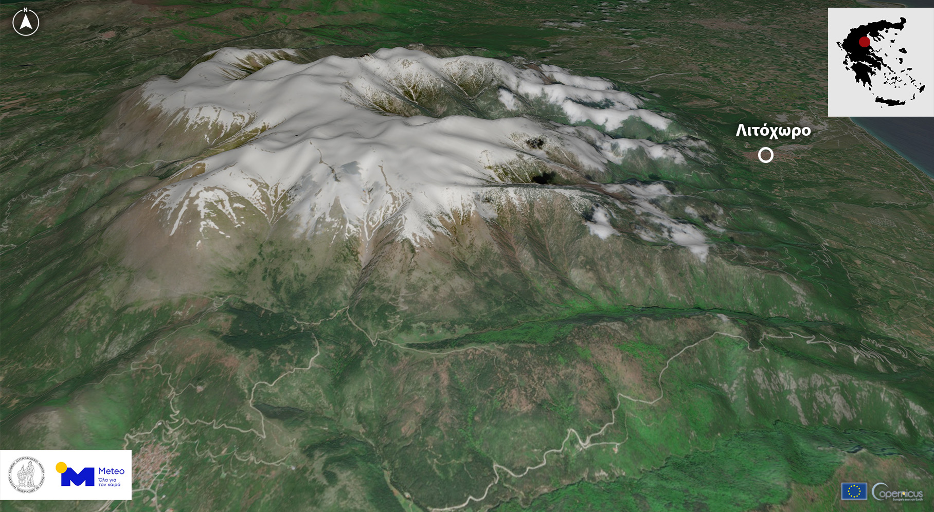 Η παρακάτω δορυφορική εικόνα υψηλής ανάλυσης αποτυπώνει τον Όλυμπο, το υψηλότερο βουνό της Ελλάδας με κορυφή στα 2.917 μ. τη Δευτέρα 27 Απριλίου 2026. Οι καλές καιρικές συνθήκες που επικράτησαν τις τελευταίες ημέρες, στα περισσότερα τμήματα της χώρας, επέτρεψαν να έχουμε μια καθαρή ματιά στις κορυφές του Ολύμπου, που παραμένουν χιονισμένες στα τέλη Απριλίου.